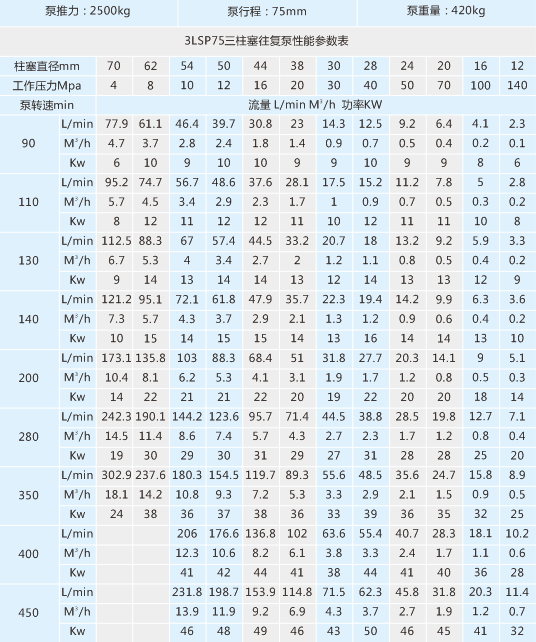 ※ 你選型時表中流量不合適,可用電磁調速,變頻調速,變換柱塞直徑來調節流量,滿足選型需要。