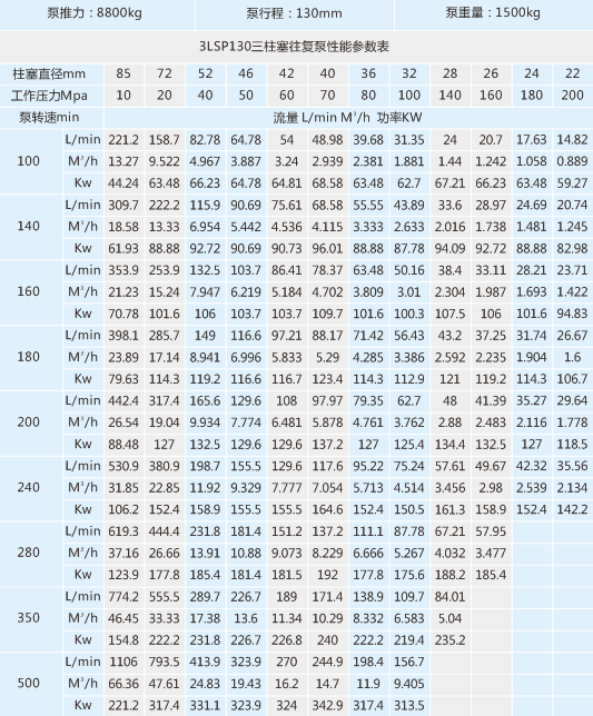 ※ 你選型時表中流量不合適,可用電磁調速,變頻調速,變換柱塞直徑來調節流量,滿足選型需要。